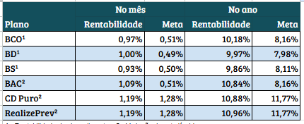 A Fachesf, fundo de pensão dos empregados da Cia Hidrelétrica do São Francisco (Chesf), fechou o mês de outubro/25 com quatro de seus seis planos rentabilizando acima das suas respectivas metas atuariais/índices de referência. Enquanto os planos BCO, BD, BS e BAC conseguiram ultrapassar a meta no mês, os planos CD Puro e RealizePrev ficaram aquém desse objetivo. No acumulado do ano o desenho é o mesmo, os mesmos quatro planos superaram as metas/índices e os mesmo dois ficaram aquém dos objetivos. (ver tabela abaixo)